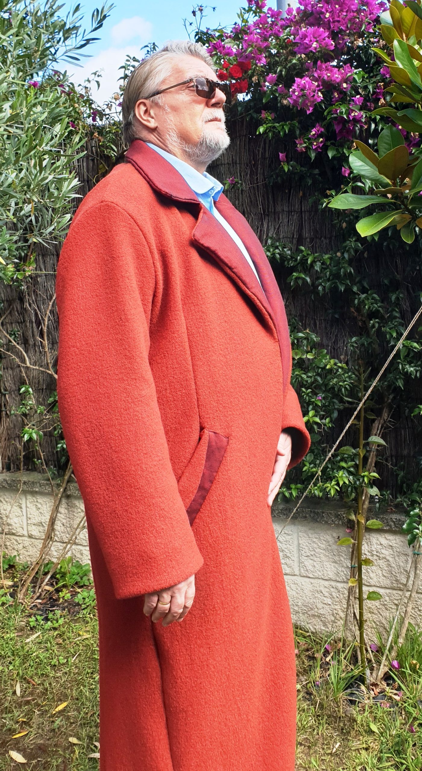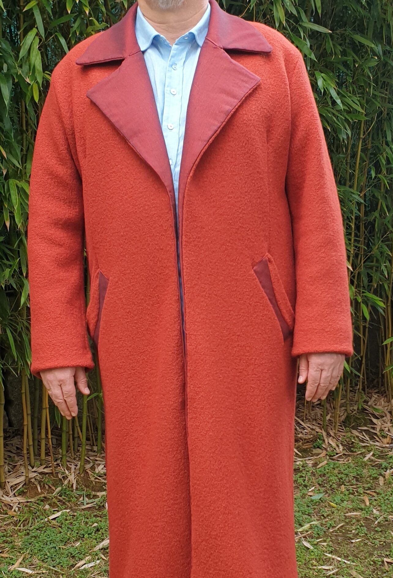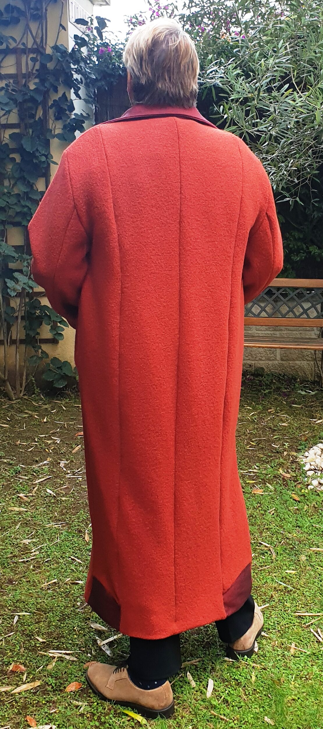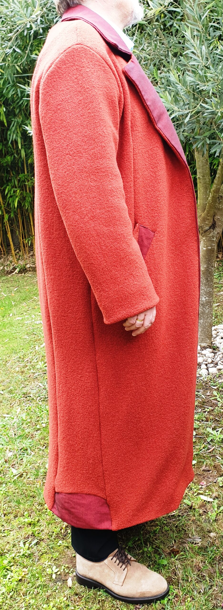 Abrigo largo artesanal lana con adornos en pagne tissé caballero