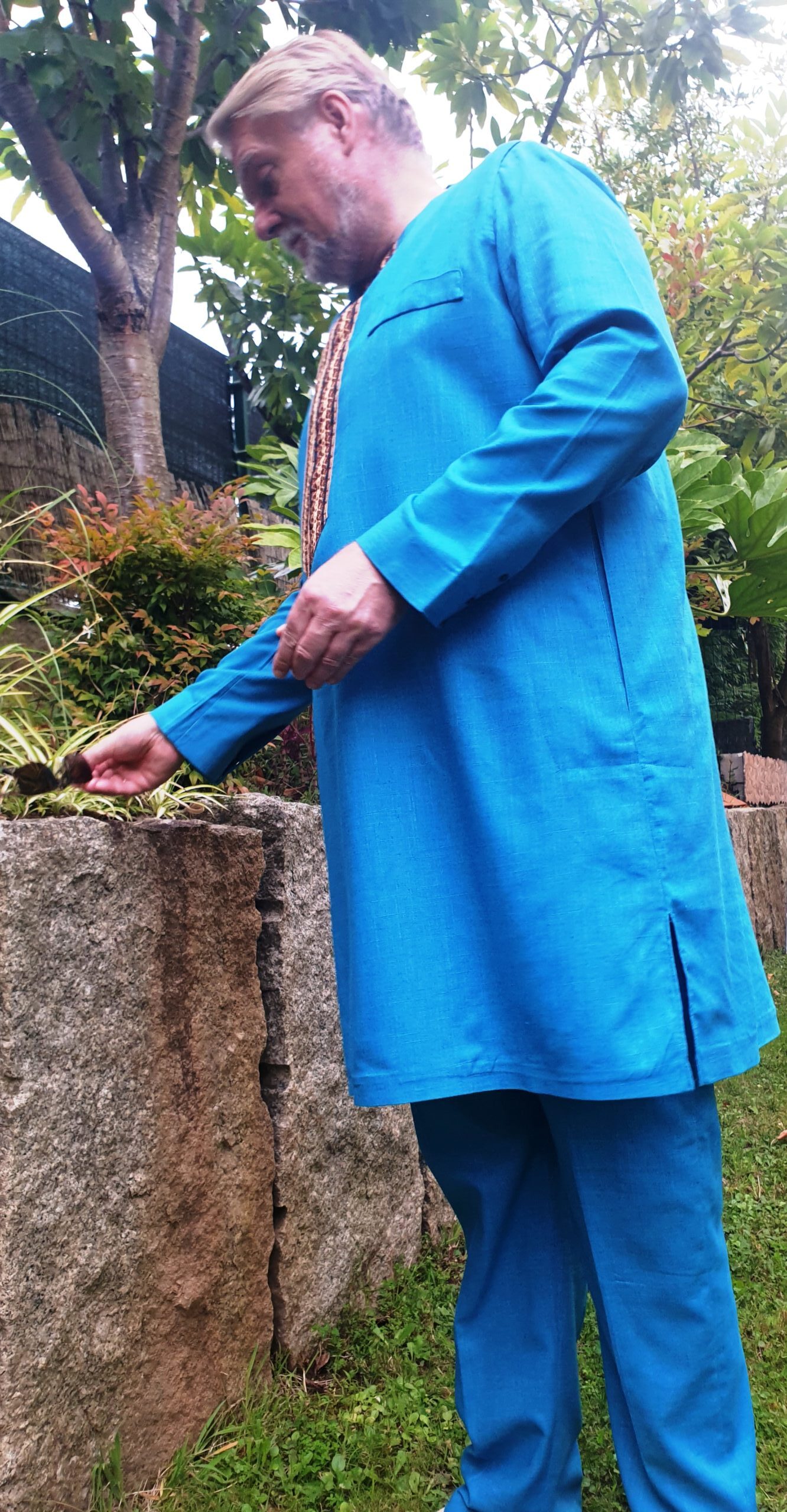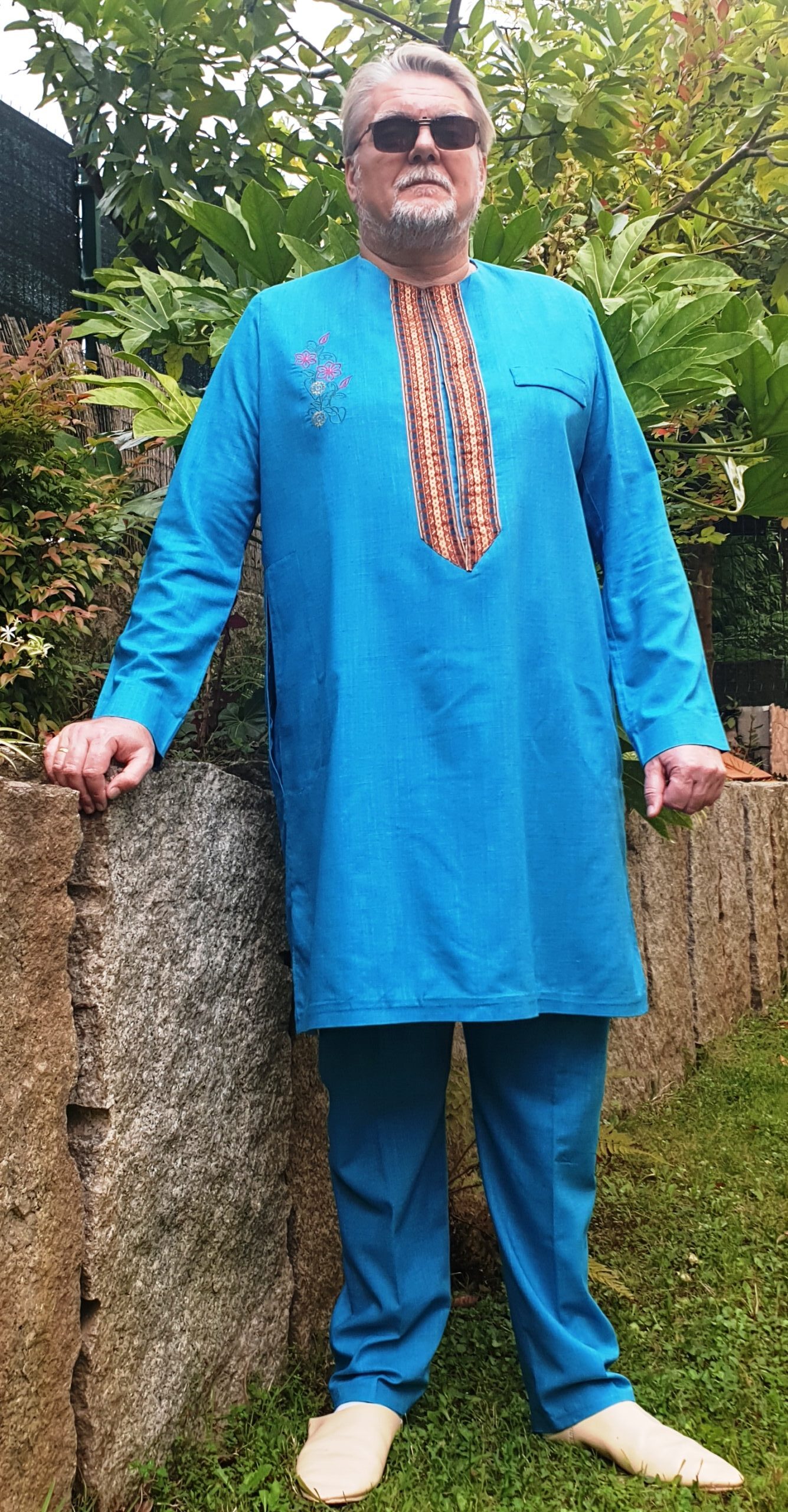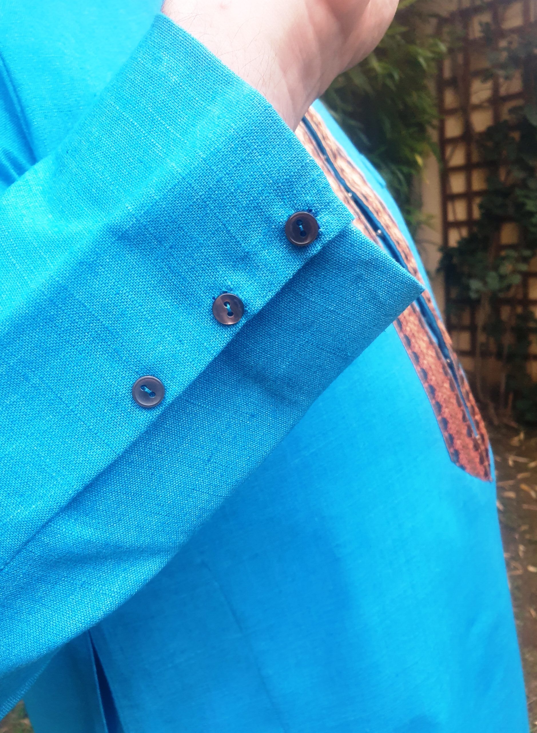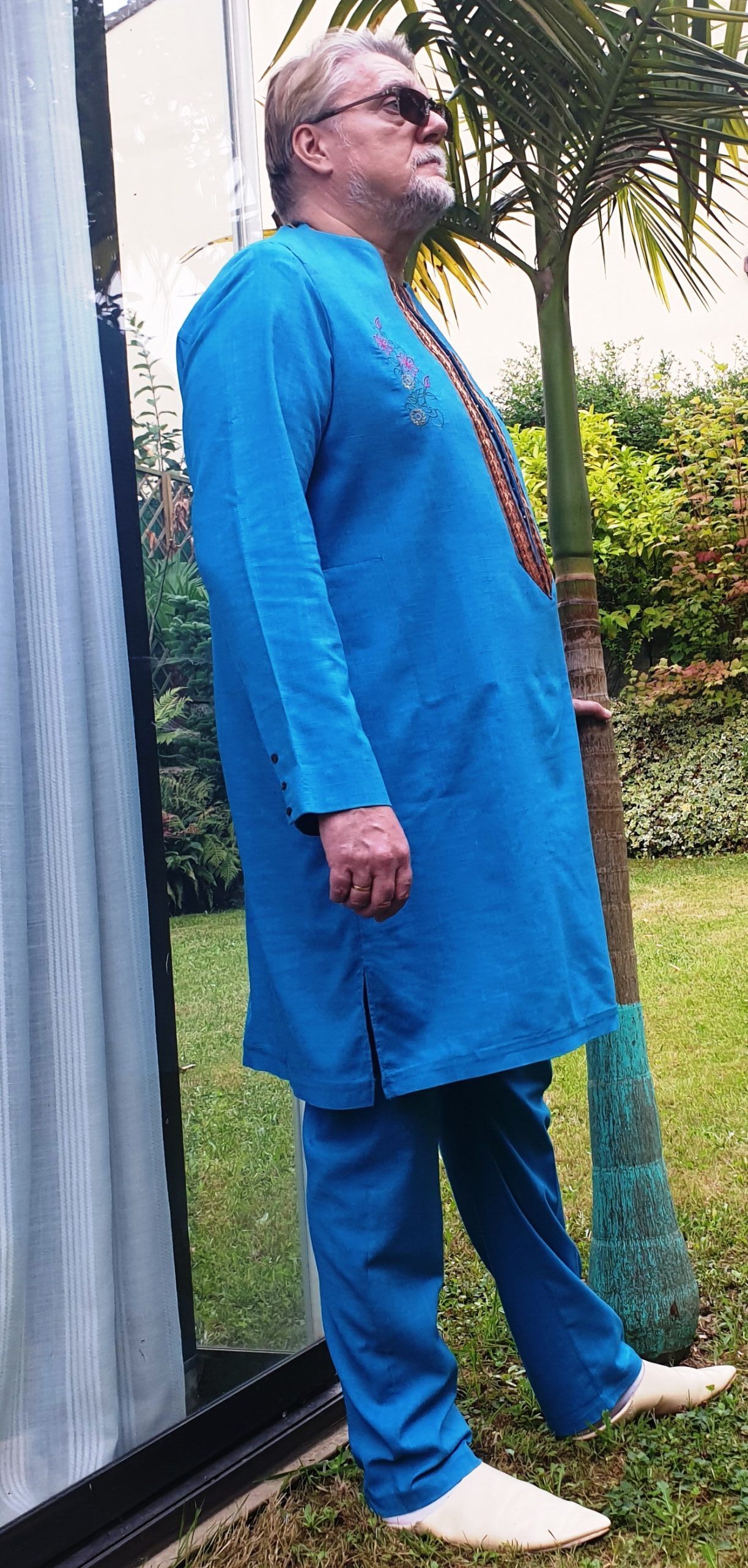 Conjunto chaqueta con brodé y pantalón lino caballero