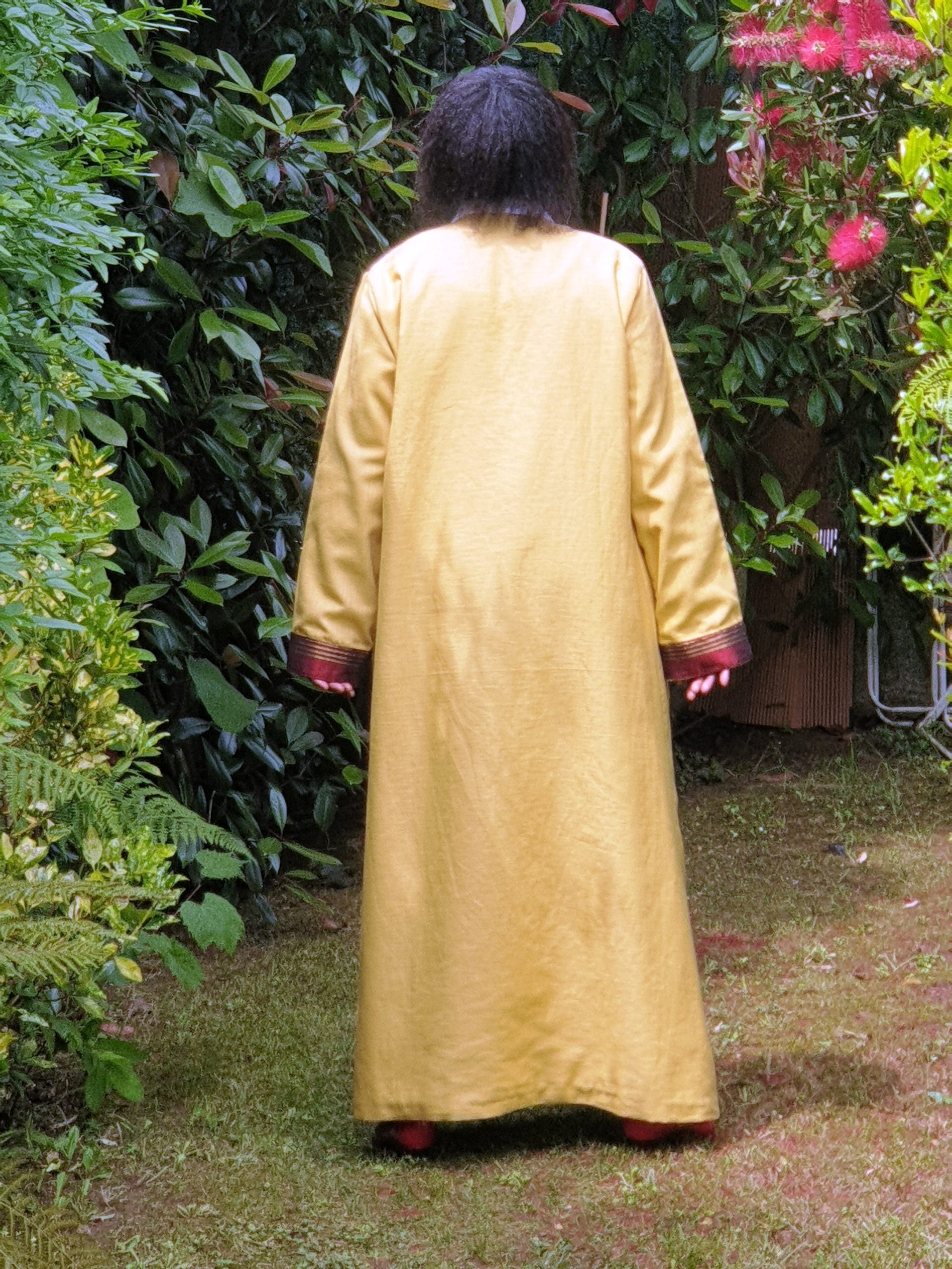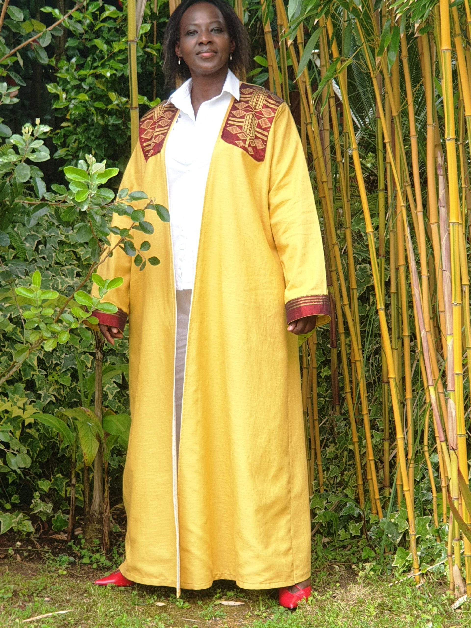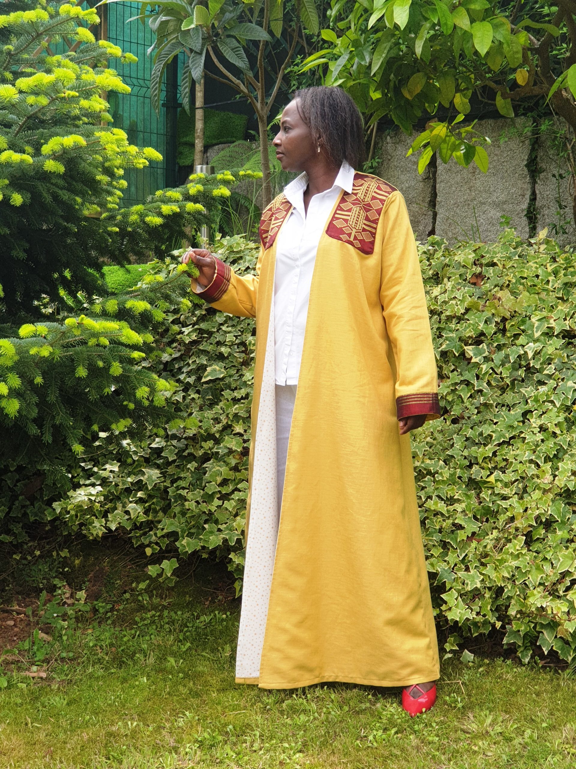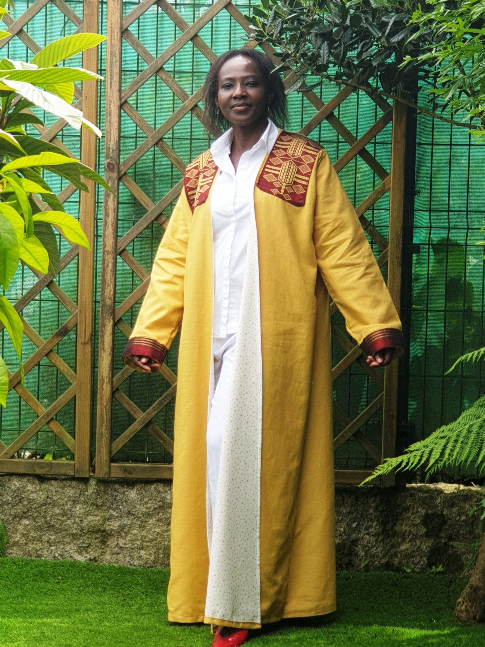 Vestido largo lino con adornos artesanales en pagne tissé mujer