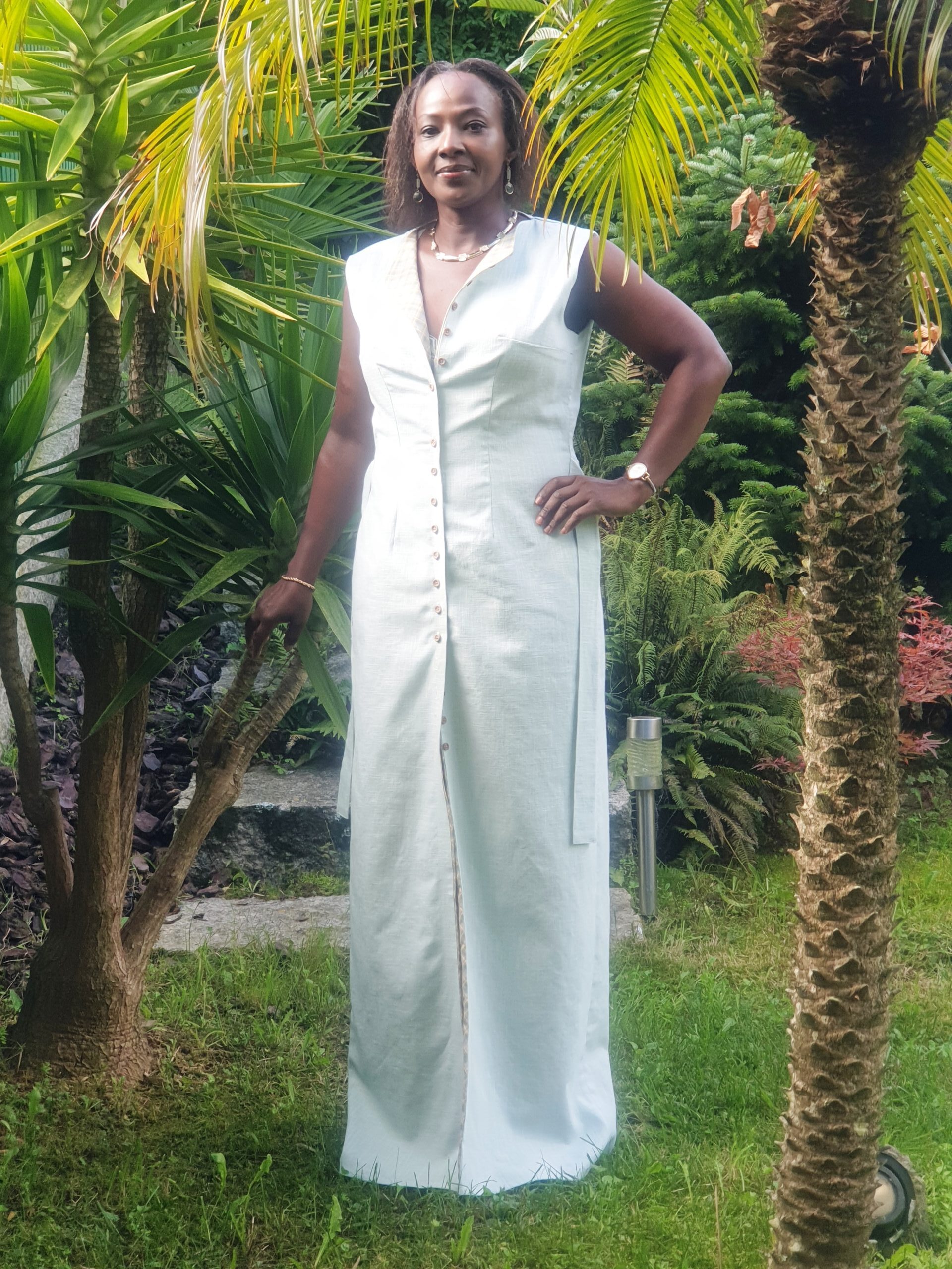• Vestido: Tejido Lino y adornos botones en madera.